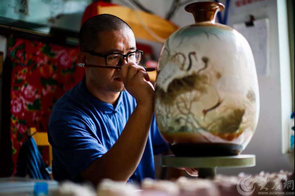 谷善龍對(duì)作品進(jìn)行釉上彩繪