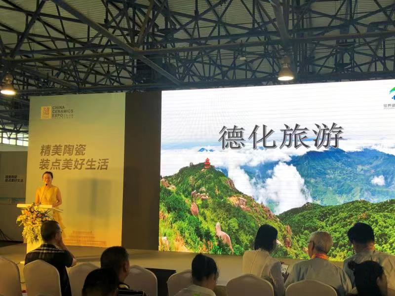8月5日上午,德化縣在展覽中心舉行了以“你好世界 我是德化”為主題的專(zhuān)場(chǎng)推介會(huì)。中國(guó)陶瓷工業(yè)協(xié)會(huì)常務(wù)副理事長(zhǎng)吳越申、副理事長(zhǎng)兼秘書(shū)長(zhǎng)侯文全,清華大學(xué)美術(shù)學(xué)院陶瓷藝術(shù)系教授張守智,德化縣人民政府副縣長(zhǎng)張秋英,云南省華寧縣人民政府縣長(zhǎng)張燕華、副縣長(zhǎng)鄧會(huì)賓,以及泉州、德化商會(huì)代表等出席了推介會(huì)。