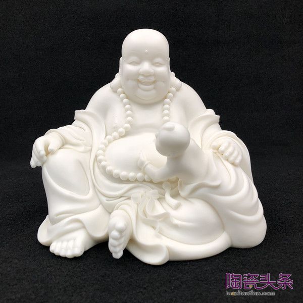 值得一提的是,在以現(xiàn)代簡(jiǎn)約抽象為主流創(chuàng)作風(fēng)格的當(dāng)下,陳金通仍堅(jiān)持創(chuàng)作傳統(tǒng)風(fēng)格的瓷雕作品。他的觀音、彌勒、羅漢等瓷雕作品都帶有濃厚的明代何派造像風(fēng)格。不過(guò),陳金通并不是一成不變地照仿古陶瓷作品造像,而是在沿襲先輩創(chuàng)作風(fēng)格的基礎(chǔ)上,融入自己的獨(dú)有見(jiàn)解。如手托經(jīng)書(shū),慈祥和善地坐于祥云上的持經(jīng)觀音作品,便與何朝宗的手握書(shū)卷,端坐于巖石上的持經(jīng)觀音造像大為不同,為我們呈現(xiàn)了不同樣態(tài)的持經(jīng)觀音形象,別有一番風(fēng)味。