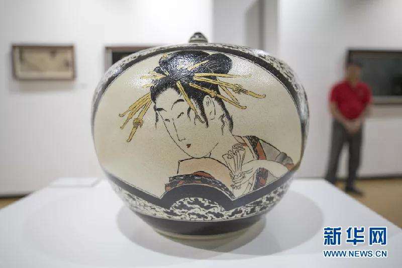 8月6日,在日本橫濱展覽現(xiàn)場拍攝的帶有日本傳統(tǒng)美術元素的陶瓷作品。