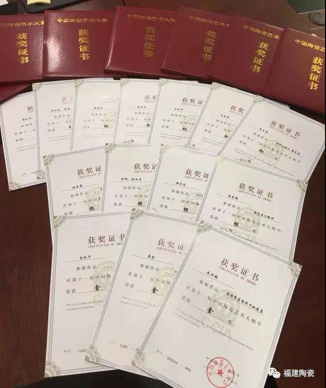 福建省陶瓷行業(yè)協(xié)會(huì)和德化縣陶瓷發(fā)展委員會(huì)辦公室積極組織企業(yè)參加第十一屆中國(guó)陶瓷藝術(shù)大展,德化“”及建陽“建窯建盞”共計(jì)300多件作品在龍泉展出。福建產(chǎn)區(qū)66件作品獲獎(jiǎng),其中金獎(jiǎng)11件,銀獎(jiǎng)20件,銅獎(jiǎng)35件。