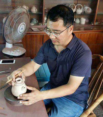 郭義興,1969年出生于河南省禹州市,禹州市鈞興茶具藝術(shù)工作室藝術(shù)總監(jiān)。河南工業(yè)大學(xué)陶瓷系材料工程專業(yè)畢業(yè),河南工業(yè)大學(xué)客座教授,當(dāng)代中國中青年鈞瓷藝術(shù)家。曾師承首屆中國陶瓷藝術(shù)大師晉佩章學(xué)習(xí)鈞瓷藝術(shù),專業(yè)從事傳統(tǒng)鈞瓷茶具制作。