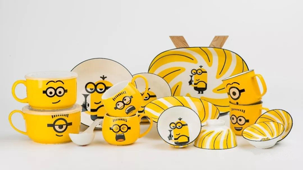 皓業(yè)彩瓷與美國(guó)環(huán)球影業(yè)在2017年簽訂了關(guān)于神偷奶爸電影系列授權(quán)許可事宜,并授權(quán)產(chǎn)品為陶瓷制品。在第112屆中國(guó)日用百貨商品交易會(huì)上,皓業(yè)彩瓷攜帶精致的小黃人系列新品驚艷亮相,成為了展會(huì)中的一大亮點(diǎn),吸引了眾多經(jīng)銷商與消費(fèi)者。