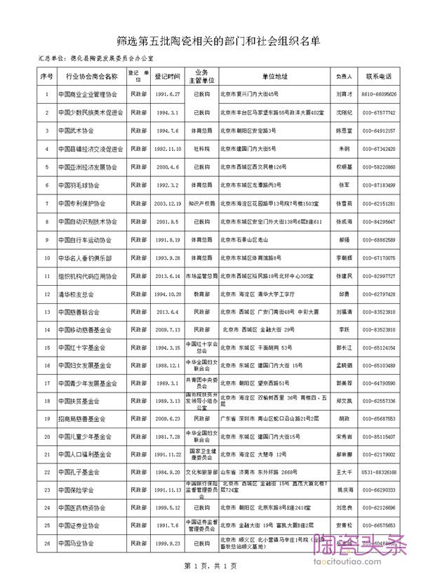 第五批陶瓷有關(guān)的部門和社會(huì)組織名單公布