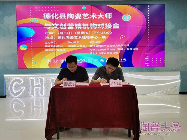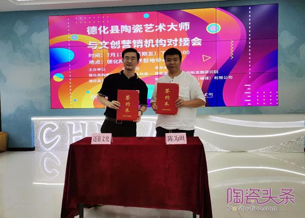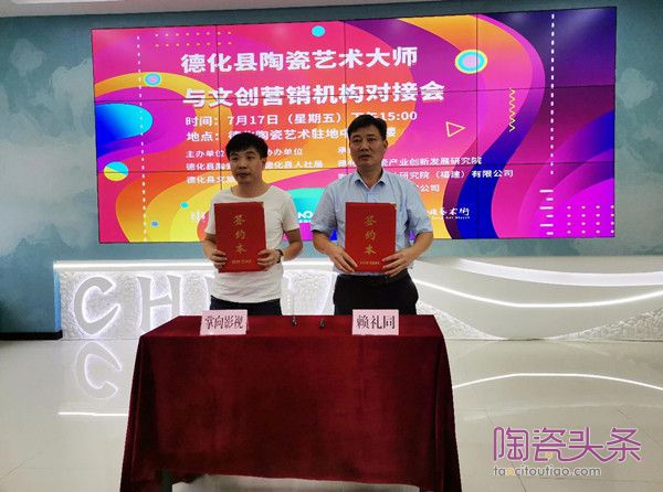 現(xiàn)場掌向影視、還巢文化分別與中國工藝美術(shù)大師賴禮同、福建省工藝美術(shù)大師陳為坦對接成功,并進行簽約。此外,現(xiàn)場還舉行了縣陶瓷辦與陶瓷藝術(shù)駐地中心入駐機構(gòu)代表清正文化的簽約儀式。