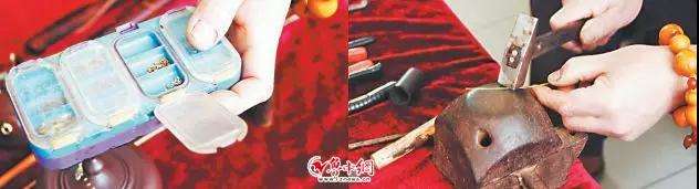 但楊濤對(duì)鋦瓷的熱愛始終難以釋懷,白天上班,晚上回到家,他就研究鋦瓷技藝。爺爺去世多年,有些珍貴的鋦瓷工具也被破壞了,他就自己制作工具。有鄰居家的碗、盆打碎了,需要幫忙的,他就免費(fèi)給鋦。目前,他的工作室有3000多種鋦瓷工具,一半以上都是自己制作的。