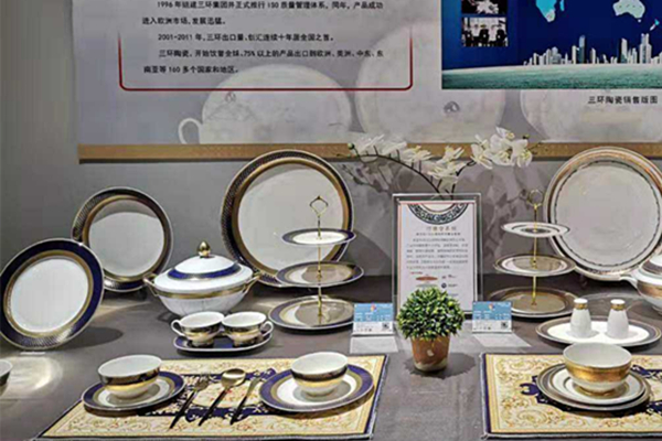 匯報(bào)展上,三環(huán)陶瓷融合了具有突破性創(chuàng)新的二次燒成高溫硬質(zhì)瓷生產(chǎn)技術(shù)及領(lǐng)先業(yè)內(nèi)的釉中彩生產(chǎn)技術(shù),打造出特別為慶祝中華人民共和國成立七十周年制作的宴會(huì)餐具——“一帶一路——東盟共同體”,用高技術(shù)書寫絲綢之路新篇章,打造廣西文化名片,成為廣西陶瓷產(chǎn)業(yè)轉(zhuǎn)型升級的典范。匯報(bào)展展出了三環(huán)集團(tuán)歷屆的東盟國禮產(chǎn)品、具有文化內(nèi)涵的高附加值陶瓷精品、高科技陶瓷產(chǎn)品等。的積極貢獻(xiàn),同時(shí)期望三環(huán)陶瓷今后取得更大的進(jìn)步。