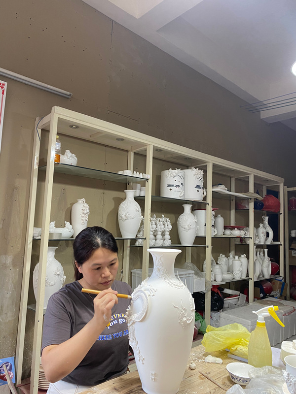 “藝術是一個廣闊而包容的空間,不要局限于某一種題材、某一種表現(xiàn)技法,而德化白瓷就像一張白紙,可以發(fā)揮無限的想象,用雕刻、捏塑、彩繪等多種手法,創(chuàng)作各式各樣、精致美觀、與眾不同的陶瓷作品?!薄?0后”創(chuàng)作者林麗品反復實踐,大膽嘗試,將漆線雕與德化白瓷相結合,形成獨有的“瓷線雕”裝飾技法。作為德化瓷燒制技藝代表性傳承人,她用自己的巧手匠心,詮釋著陶瓷藝術的新意。(東南早報記者 賴小玲 通訊員 寇婉瓊 張玉芬)