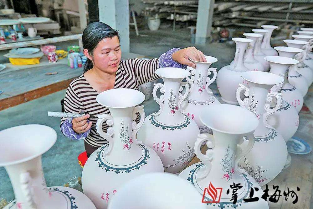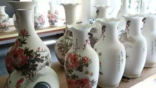 ▲桃源鎮(zhèn)昌隆陶瓷廠的工人正在薄坯花瓶上作畫(huà)。