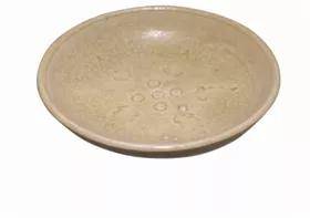 青釉盤(圖1):器型較小,盤腹較深,盤內(nèi)底飾花葉暗紋。胎體厚重、粗獷、質(zhì)樸,盤子的口沿部位刻劃一道明顯的弦紋。圓盤內(nèi)壁滿釉,釉層有強(qiáng)烈的玻璃質(zhì)感,釉面開片較為明顯,可見這一時(shí)期的胎釉結(jié)合不甚緊密。