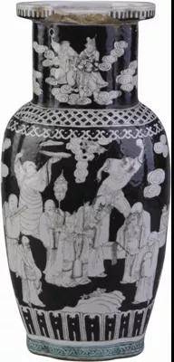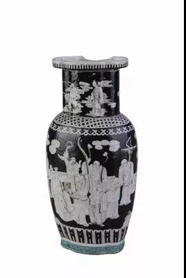 綜上所述,這件民國(guó)時(shí)期墨地留白十八羅漢紋扁瓶,雖然談不上多么精致,但是造型、裝飾皆有其特別之處,反映了民國(guó)瓷器的一些特點(diǎn),值得一觀。