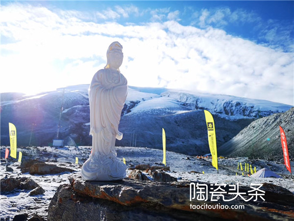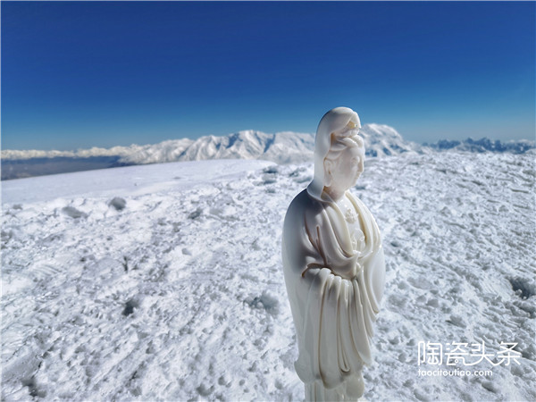 近日,德化有一位叫曾憲杰的小伙子,不遠千里,從家鄉(xiāng)德化背了一件代表性的白瓷作品《渡海觀音》,前往新疆,攀登海拔7514米的慕士塔格高峰,并克服重重艱險,成功登頂山峰。當他把《渡海觀音》拿出來與雪峰合影時,不禁引來同行旅伴的圍觀。潔白無瑕、莊嚴肅穆的《渡海觀音》塑像,在這高山面前,越顯圣潔與偉大。它就如同這雪峰一般,純粹無暇,偉岸神圣,讓人心生敬畏。