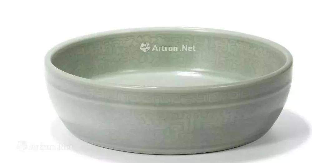 清乾隆 仿龍泉青釉暗刻寶螭團(tuán)花花果紋洗