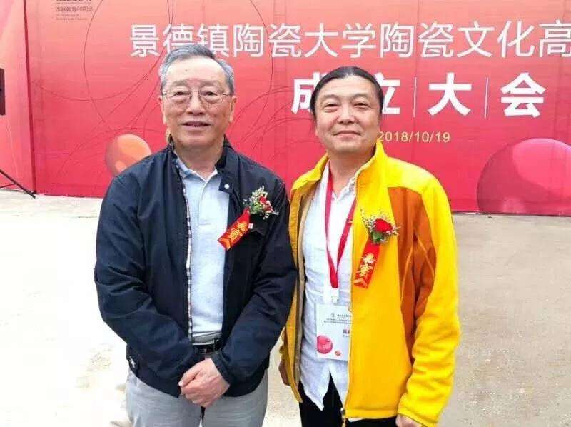景德鎮(zhèn)陶瓷大學名譽校長秦錫麟與王一君大師合影