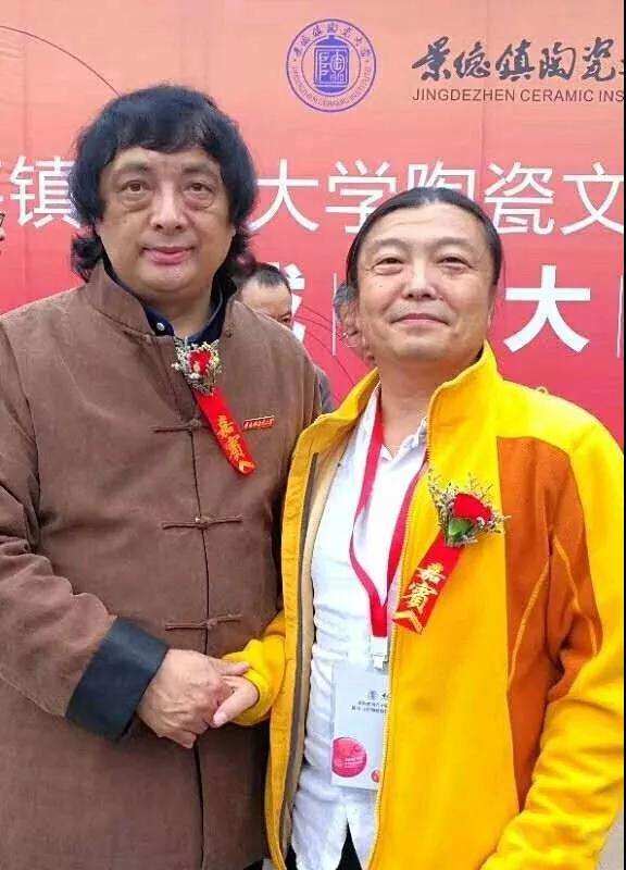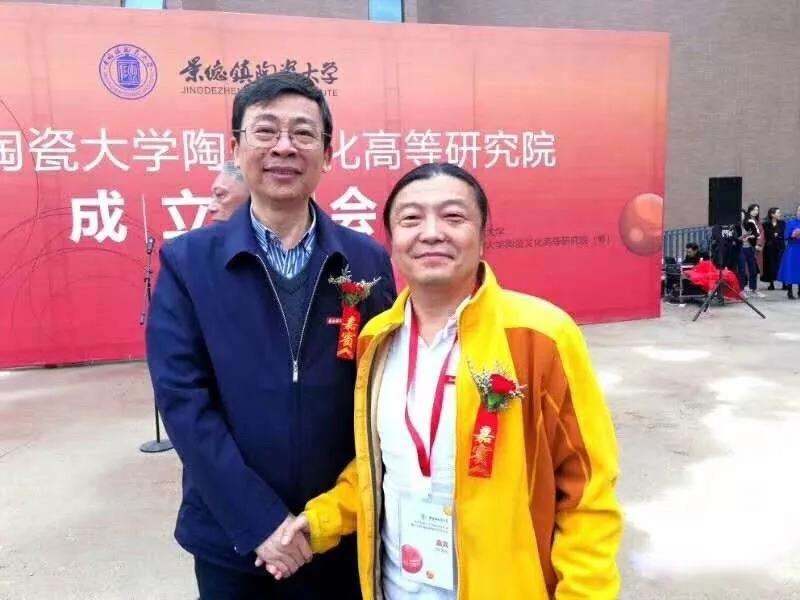 景德鎮(zhèn)陶瓷大學校長、陶瓷文化高等研究院院長寧鋼與王一君大師合影