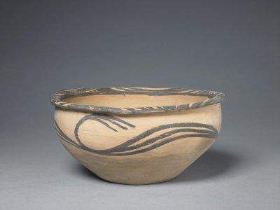 水波紋最早出現(xiàn)在新石器時(shí)代的陶器上,早期河姆渡文化陶器上為刻劃水波紋,中晚期馬家窯文化彩陶器上為彩繪水波紋。工匠們?cè)趧澙L水波紋時(shí),憑藉平時(shí)對(duì)水的觀察和印象,隨興而至,線條流暢優(yōu)美,構(gòu)圖豐富變化,富有藝術(shù)感染力。