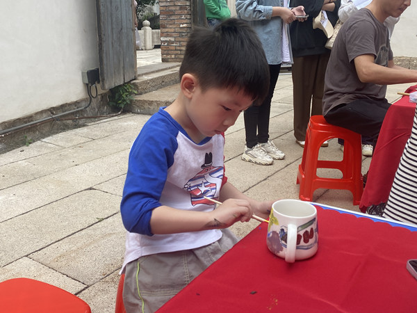 在瓷繪DIY體驗活動上,蘇輝煌老師鼓勵小朋友與家長大膽發(fā)揮想象,合力創(chuàng)作,他還不時與現(xiàn)場參與的小朋友互動,指導繪畫技法。大朋友小朋友們各顯神通,用一根小小畫筆,繪出五彩的陶藝世界。