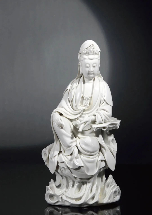 明 何朝宗制德化白釉坐巖持經(jīng)觀音坐像