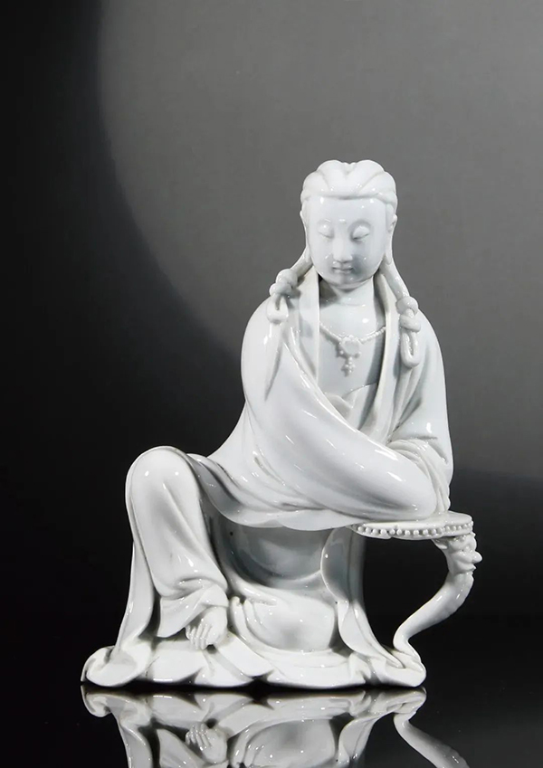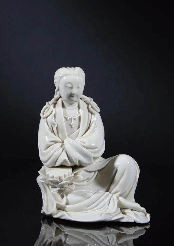 明代時(shí)期,瓷塑人物是德化瓷中最著名的制品,如達(dá)摩、觀音等,《天工開物》曰:“德化窯,惟以燒造瓷仙精巧人物玩器”。以“瓷圣”何朝宗款最為著名。