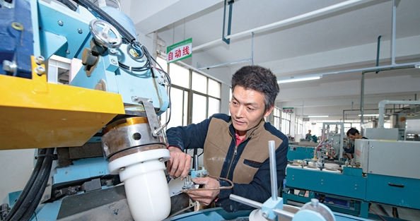 走進(jìn)德化協(xié)發(fā)光洋陶瓷有限公司,工人數(shù)量寥寥,吸引目光的是一條條自動(dòng)化生產(chǎn)線。“這些生產(chǎn)線自動(dòng)成型的瓷坯次品率從以往人工生產(chǎn)的15%降為目前的2%—3%,產(chǎn)品質(zhì)量更為穩(wěn)定?!惫径麻L(zhǎng)助理鄭富垚說(shuō)。