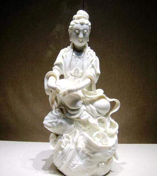 明代德化窯白瓷極力追求完美的玉質(zhì)感,在瓷壇上獨(dú)樹一幟。明代德化窯燒造的瓷雕久負(fù)盛名,尤以“何朝宗”款最為著名。早在16世紀(jì)的“東西洋”市場上,何朝宗的作品就被譽(yù)為“東方藝術(shù)”、“世上獨(dú)一無二珍品”,“可與米蘭的斷臂維納斯相媲美……”,人們“不惜以萬金爭購之”。早在幾百年前,何朝宗的作品已深受青睞。