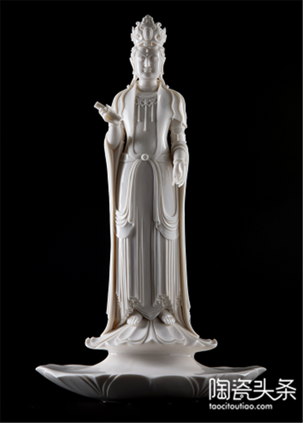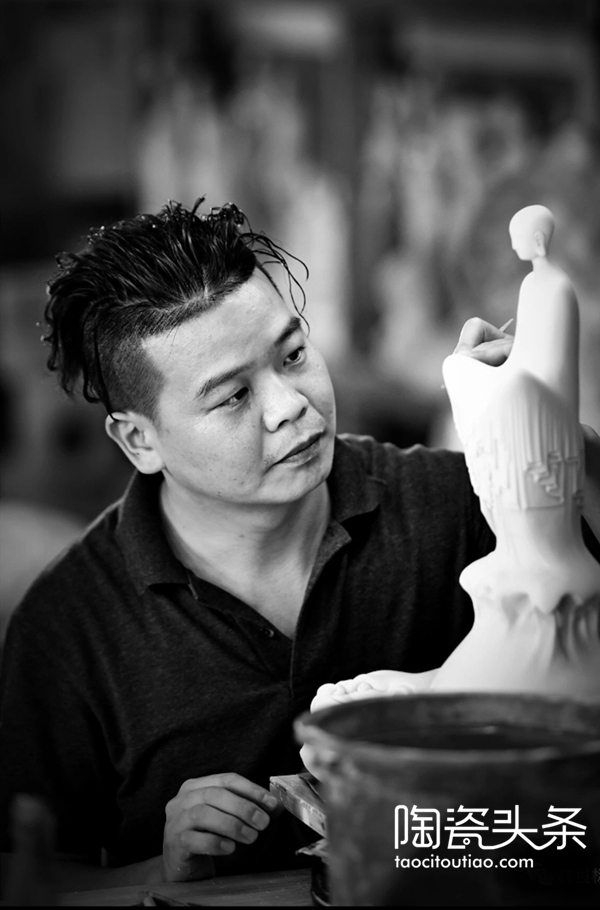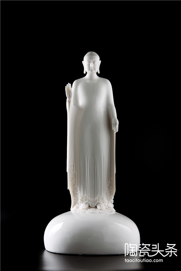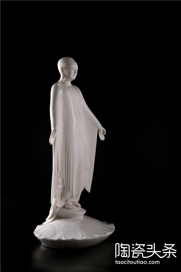 李璋高的作品主要以傳統(tǒng)的佛像和仕女創(chuàng)作題材為主,因德化白瓷純凈細(xì)膩,高潔無瑕,溫潤如玉的特點(diǎn),與佛像靜謐祥和、純粹圣潔,與仕女的柔美端莊、文雅清純,相得益彰,百看不厭。
